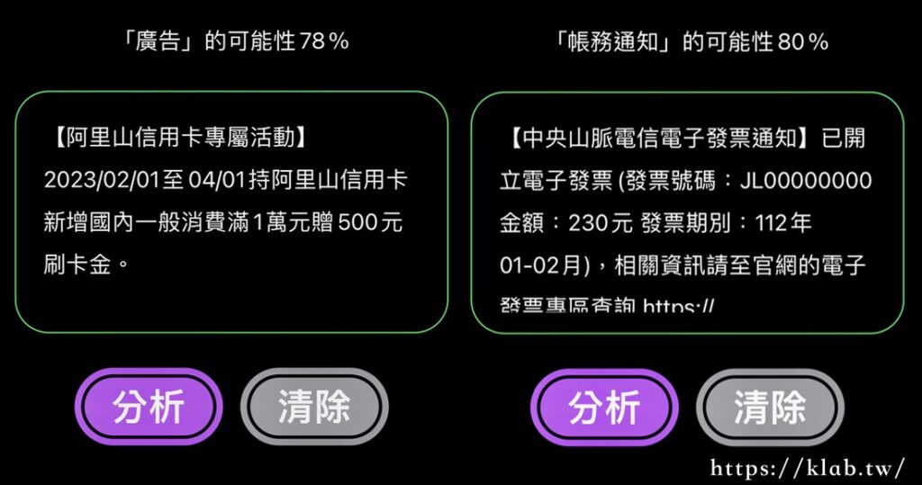 let text = "您的 Klab.tw Blog 認證碼為888888,請於2分鐘內輸入,謝謝。"