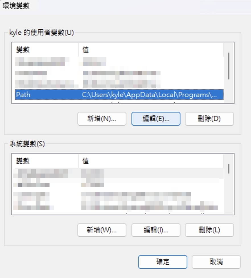 具體方式是開啟 Windows 設定 App,然後依序點選 系統 ➡️ 系統資訊 ➡️ 裝置規格區塊下方的進階系統設定,會開啟「系統內容」的設定視窗,然後點選進階頁籤最下面的「環境變數」,在使用者變數那邊找到 Path 點選兩下會出現一個設定視窗,然後點選右邊的新增輸入安裝成功畫面的 Location 資料,以我的例子就是輸入 C:\Users\kyle\.local\bin ,按下 Enter 後依序按確認按鈕結束設定視窗,重新啟動 Windows PowerShell,就可以在上面輸入 claude 啟動 Claude Code 了。